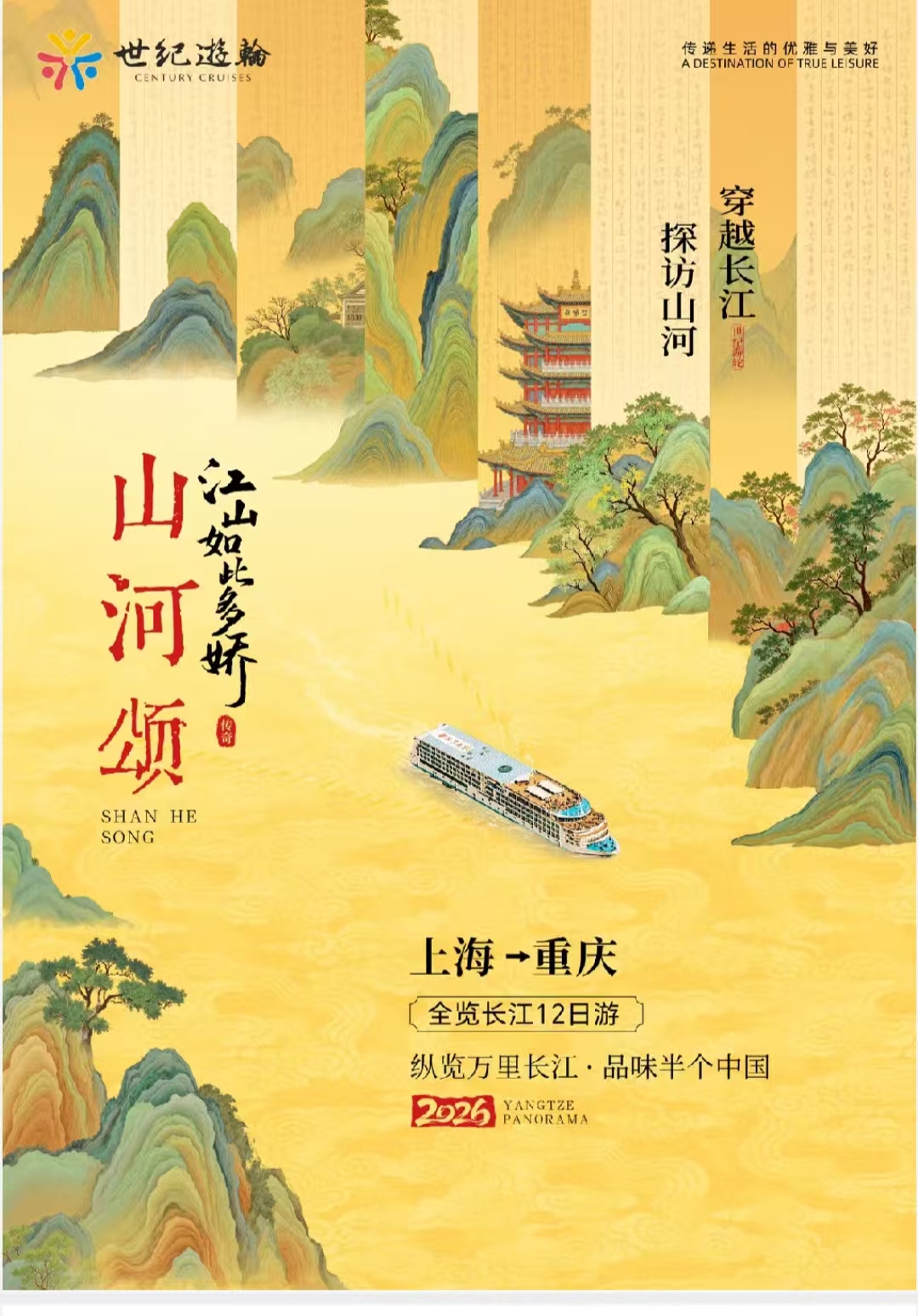 <山河颂世纪传奇号+上海+长江三峡+重庆12日>上海登船丨全览万里长江丨一价全含丨过葛洲坝,三峡五级船闸丨漫步都市与历史古城丨重庆离港
